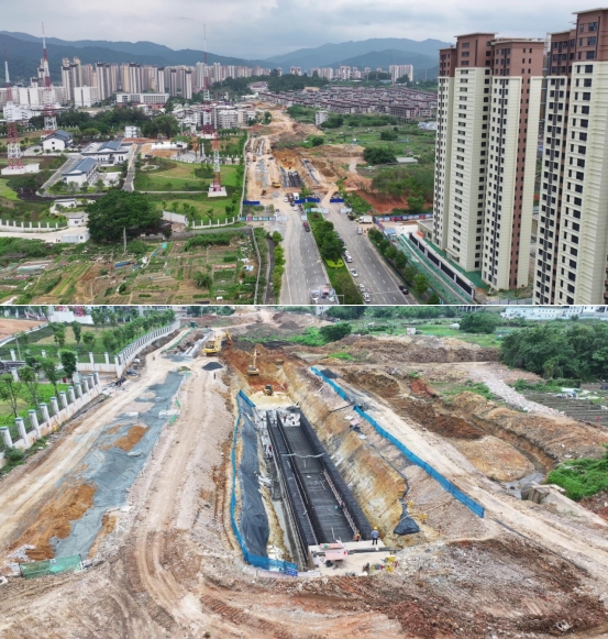 金雞路二期位于新羅區(qū)曹溪街道境內(nèi),道路起于曹溪路,終于蓮莊路,途經(jīng)月山村、浮蔡村、石粉村。該項目不僅是中心城區(qū)“一環(huán)一軸四縱五橫”交通布局中的關(guān)鍵“一橫”,更是連接城市東西方向的重要交通主干道。道路全長1630米,寬50米,雙向八車道,項目總投資約65000萬元。