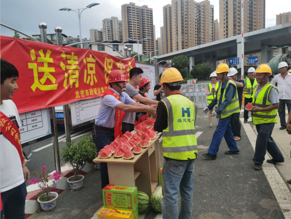 “弟兄們,來吃西瓜、喝涼茶”7月3日大中午,龍巖市政集團(tuán)組織的黨員、志愿者們?yōu)槲玳g在項(xiàng)目現(xiàn)場(chǎng)暫時(shí)休息的一線工人們獻(xiàn)上一塊塊甘甜可口西瓜。這是該公司針對(duì)近來天氣悶熱特意為一線職工開展的“走項(xiàng)目、送清涼、保安全”活動(dòng)。班子成員兵分幾路分別帶隊(duì)前往龍巖大橋、浮東路、羅橋節(jié)點(diǎn)和龍巖大道二期等重點(diǎn)項(xiàng)目,為現(xiàn)場(chǎng)一線的工人們發(fā)放了西瓜、王老吉和菊花茶等防暑降溫食品,對(duì)廣大在一線的員工克服天氣影響,堅(jiān)守崗位認(rèn)真工作表示感謝!